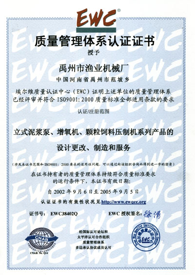 ----幾年來,我廠本著靠科技求發(fā)展,靠信息求市場,靠質(zhì)量求生存,靠管理求效益的治廠方略,大膽進(jìn)行改革,建立起一套全新的運行機制。2002年9月已通過ISO9001:2000國際質(zhì)量管理體系認(rèn)證;在2000年12月榮獲河南省科學(xué)技術(shù)廳“科技企業(yè)證書“;2001年7月獲河南省科學(xué)技術(shù)廳“高新技術(shù)產(chǎn)品證書“;2001年12月獲河南省科學(xué)技術(shù)廳“高新技術(shù)企業(yè)認(rèn)定證書“;曾獲河南省鄉(xiāng)鎮(zhèn)企業(yè)名牌產(chǎn)品稱號。